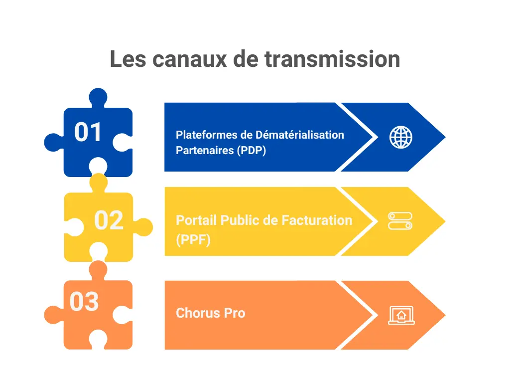 Pour garantir un échange conforme et sécurisé, les factures doivent emprunter l’un des canaux suivants :